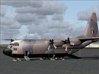 Description: This paint scheme was worn on RAF C130's during most of the 1970's to early 90's. This is an updated and modified version of my orignal repaint. Please read the Read Me file located in this Zip file to veiw changes.This particular scheme is in the configuration of "Rough Strip Prep". The belly of the aircraft is covered in black rubber matting to give extra protection form flying debris encountered during landings on unprepared landing strips. It also included armour plating to the main undercarriage doors, cables and brake lines.